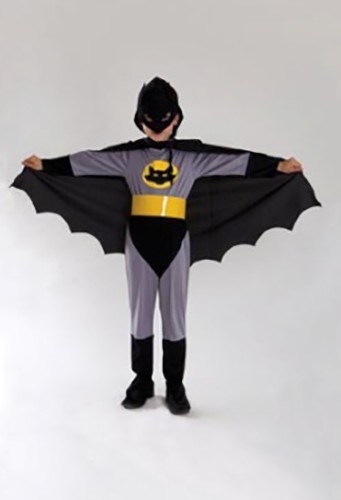 Костюм отважного Бэтмена детский поможет создать образ отважного супергероя. В комплект входит серый комбинезон с желтой эмблемой, черный плащ с острыми краями и маска на глаза.