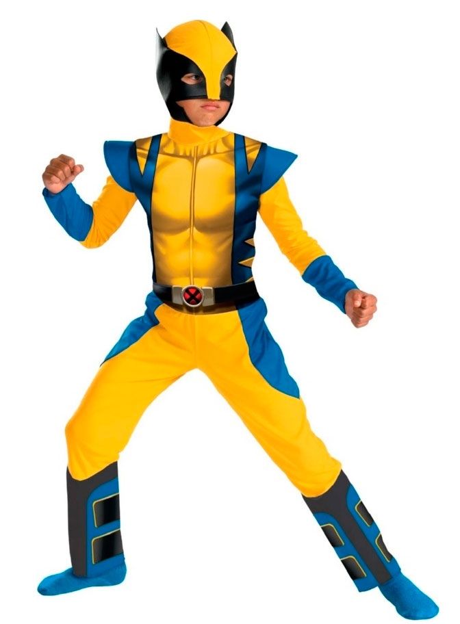 Костюм юного супер Росомахи создает образ героя перед которым рушатся самые мощные преграды. Состоит из желтого комбинезона со вшитым ремнем и маской. Для большей солидности можно купить в нашем ассортименте когти Росомахи .