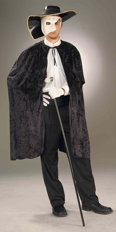 Костюм фантома подойдёт вам, если вы являетесь поклонником мюзиклов, надев этот костюм вы можете смело выходить на сцену Бродвея. Этот костюм таинственного фантома включает в себя шляпу с прикреплённой белой маской и чёрный бархатный плащ, который завязывается на шее. Просто добавьте белую рубашку и чёрные штаны для завершения образа фантома.