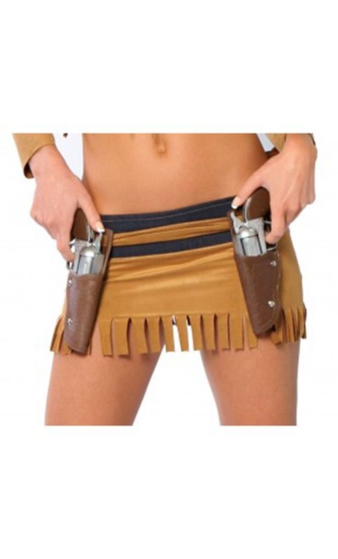 Две коричневые кобуры - это две отдельные кобуры, которые можно прикрепить к поясу. Вместе с ними поставляются пластиковые коричнево-серебряные пистолеты. Этот аксессуар идеально дополнит костюмы девушек-ковбоев и различных стрелков.