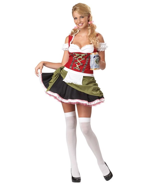 Карнавальный костюм баварской официантки представляет собой весьма сексуальное платье. Его короткая пышная юбка и глубокое декольте способны свести с ума любого мужчину. Молодая игривая официантка из Баварии не прочь пофлиртовать с посетителям и ее наряд откровенно это демонстрирует. Вы можете купить костюм официантки из Баварии и попробовать себя в роли озорной и дерзкой девушки.