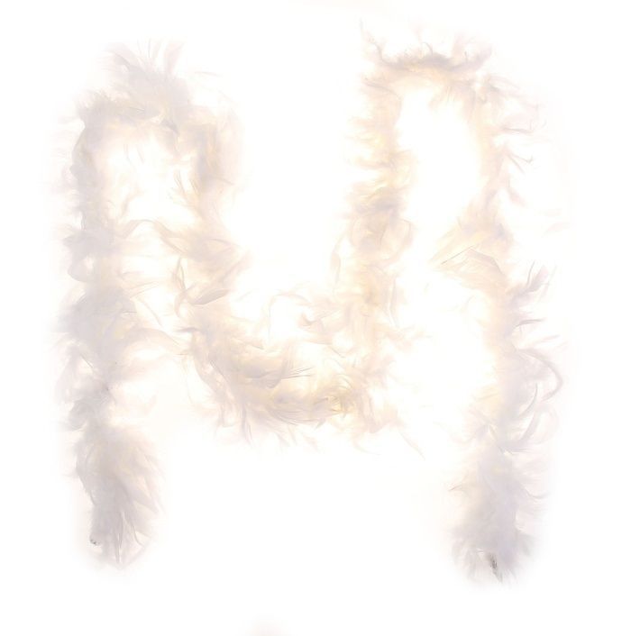 Карнавальное боа белого цвета из перьев. Длина шарфа 2 метра, вес 70 грамм.