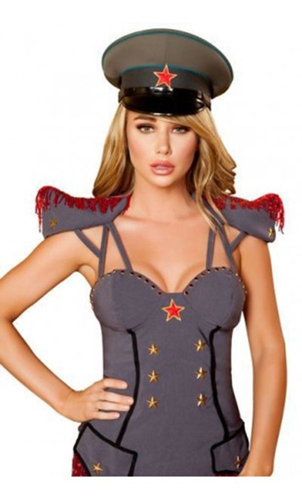 Военная шляпа - это серо-зеленая фуражка с зеленой обводкой и черным козырьком. Посередине она украшена красной звездочкой.