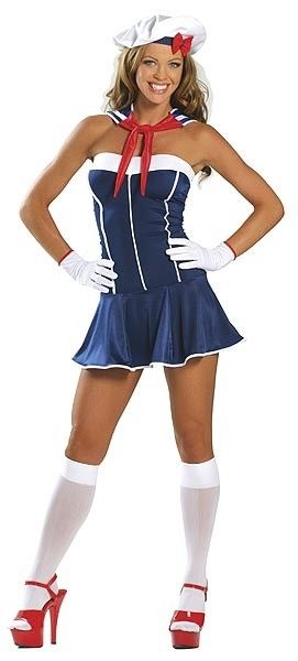 Еще 1 костюм корабельной тематики: костюм девушки матроса XL.Костюм состоит из мини-платья, платка и шляпки.Чулки и перчатки заказываются отдельно