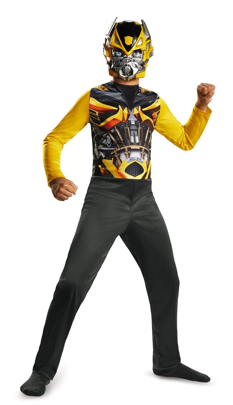 Костюм трансформера с дружелюбным именем Бамблби состоит из пластиковой маски и комбинезона, который застегивается сзади на удобных липучках. Десептиконы обратятся в бегство перед таким мужественным образом транформера.