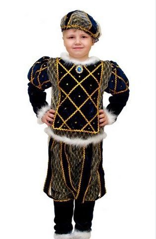 Отличную пару девчонке в костюме «Принцесса» может составить молодой человек в костюме «Принц». Оба наряда являются произведениями модельерного искусства по части деталей. А детали, - они ведь так важны в этом нелегком королевском труде. Костюм состоит из берета, камзола, штанов.