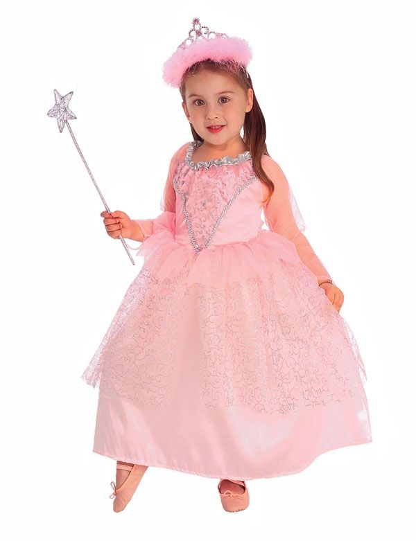 Розовое платье принцессы - пышное легкое платьице с длинными рукавами. Платье с серебряной отделкой и украшено блестками.
