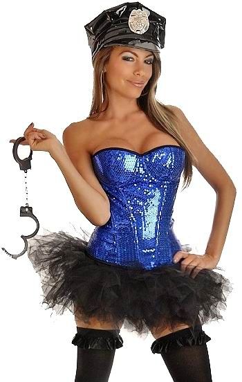 Корсетный костюм милого копа включает в себя синий корсет с пайетками без бретелек, черную пачку и кепку со значком. Этот сексуальный набор подойдет для ролевых игр и тематических вечеринок. Корсет имеет удобные чашечки на косточках и боковую молнию. Наручники приобретаются отдельно.