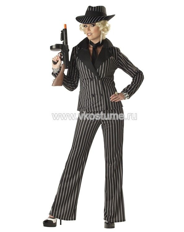 Красота, элегантность и опасность - очень интересное сочетание. В костюм леди гангстерши входят: пиджак, брюки, галстук и шляпка.