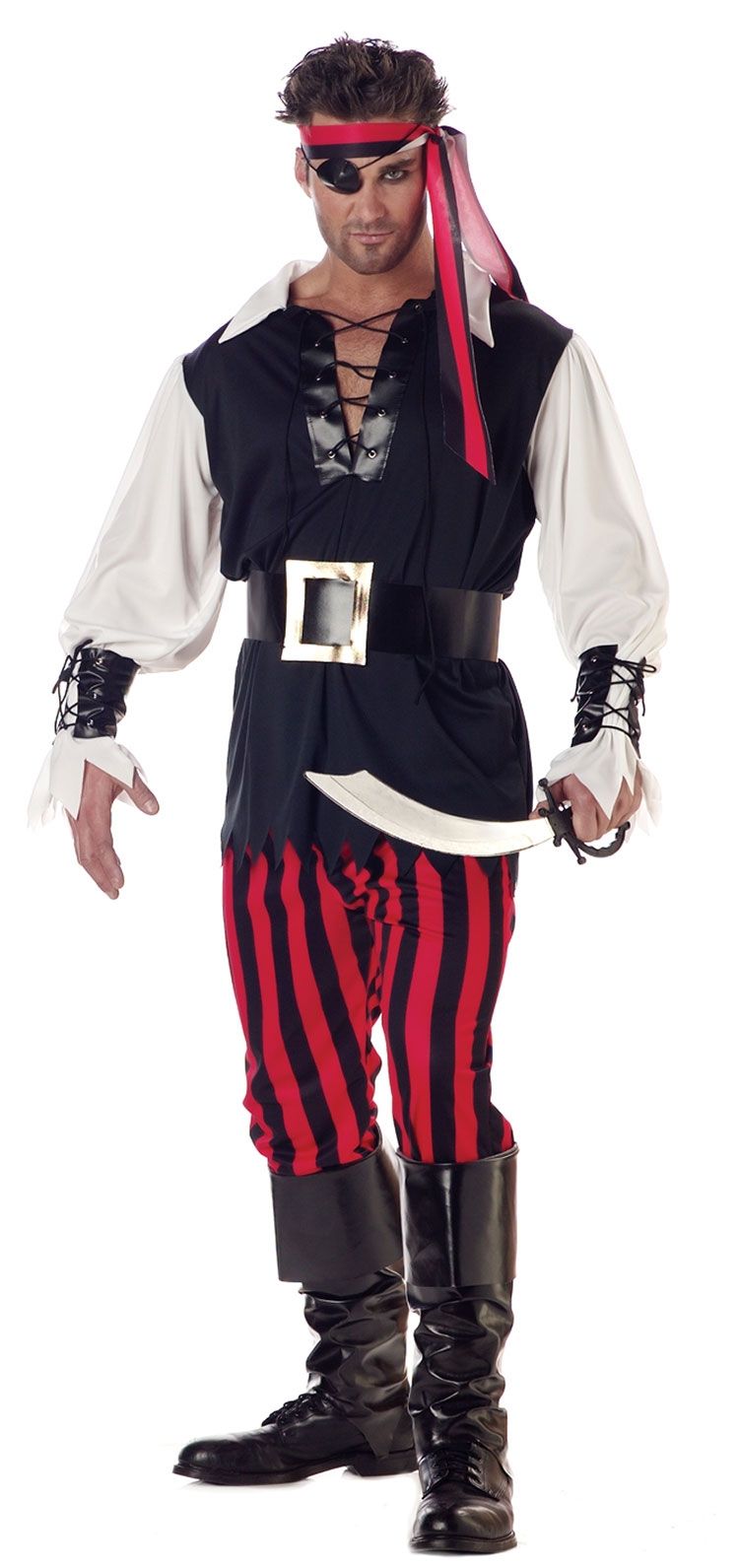 Разбойник, которому нечего терять, не внушает доверия. В костюм пирата отшельника входят: рубаха, штаны, повязка на голову, накладки на обувь, ремень, манжеты.