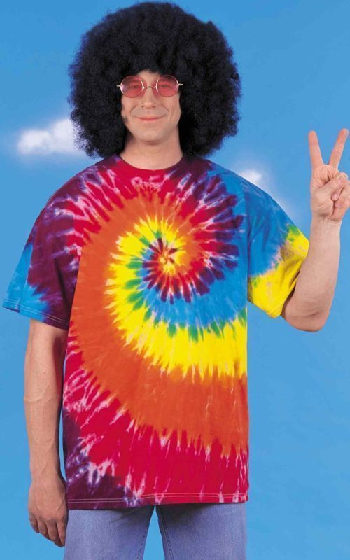Эта разноцветная футболка подойдёт для вас, если вы хотите быть на маскараде хиппи или звездой 60-хх. К этой футболке можно подбирать различные парики и очки, а также другие акссесуары и меняя их вы будете создавать совершенно разные образы.