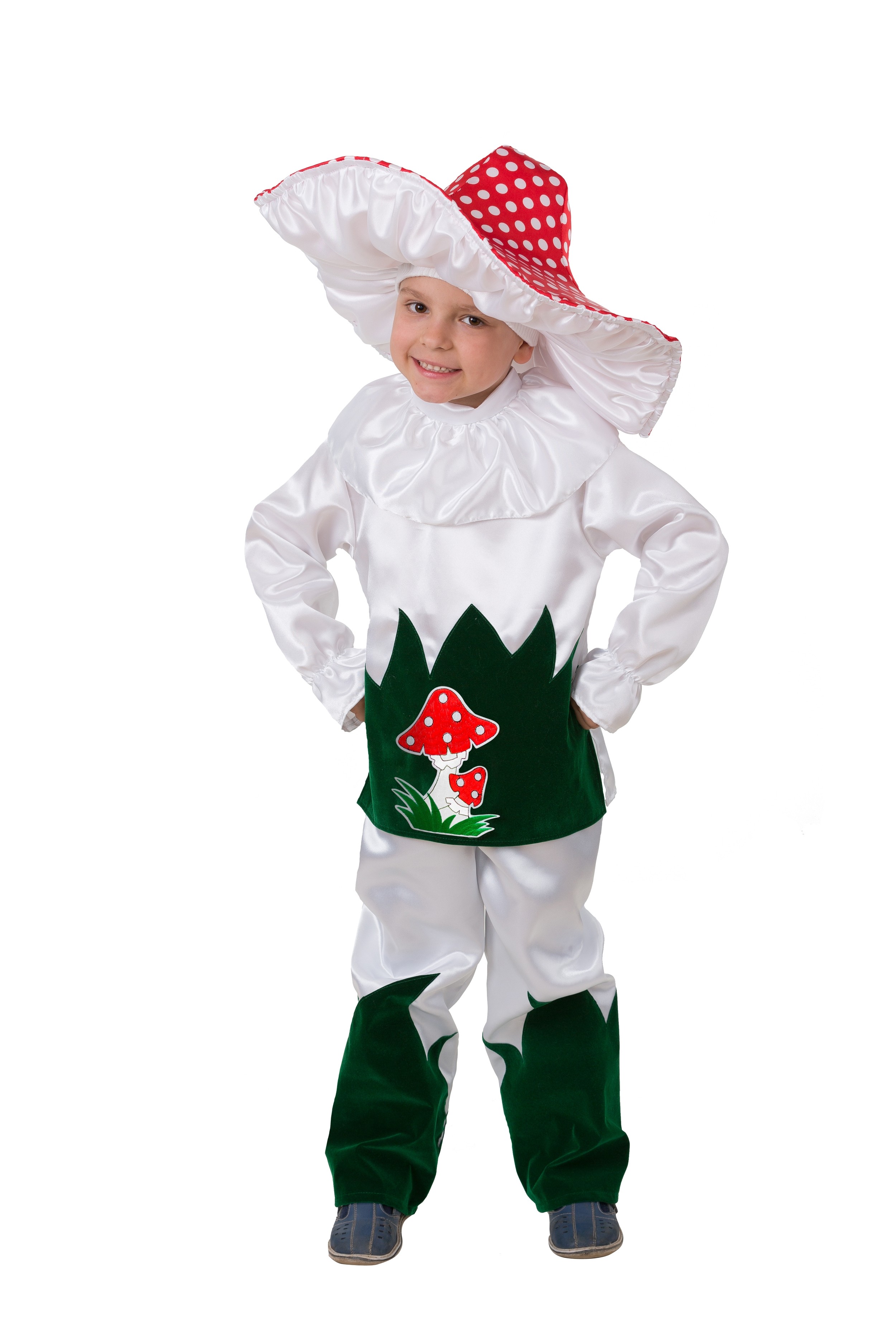 Этот забавный костюм девочки грибочка понравится весёлым маленьким девочкам. Такой костюм можно смело надеть на карнавал, маскарад или любой другой детский праздник. Наряд девочки грибочка очень легко одевается. В комплекте имеются штанишки, маечка с изображением грибочка и шляпка.