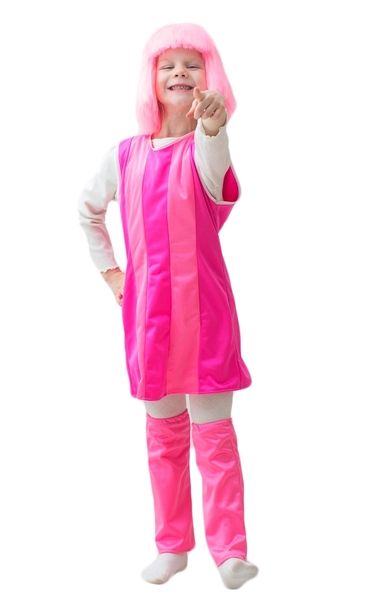 Костюм Стефани из Лентяево - это яркий розовый костюм девочки Стефани из популярной передачи-телесериала Latibær. Костюм включает в себя атласное платье, атласные розовые гетры, а также яркий розовый парик с челкой.
