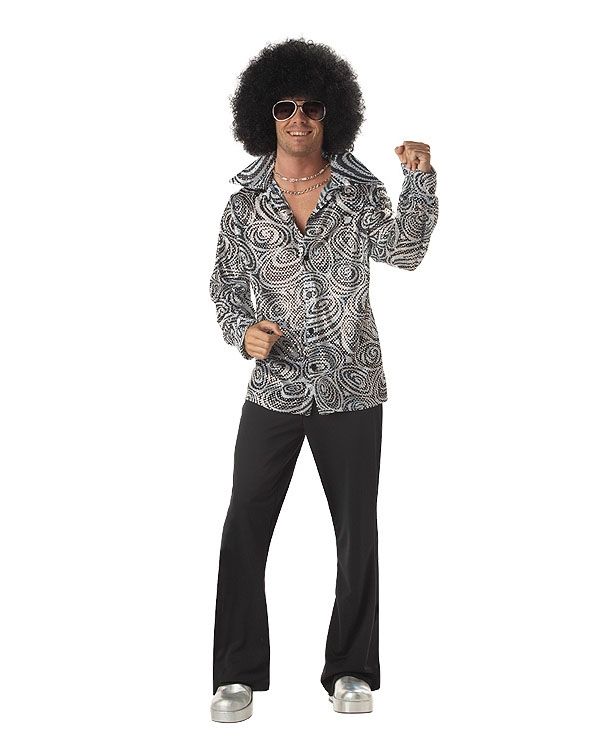 Превосходный диско набор включает в себя рубашку, выполненную в бело-чёрном цвете, а также афро парик. Такой набор подойдёт для танцевальных вечеринок, музыкальных концертов и других празднований. Подобрав к набору другие аксессуары, вы сможете дополнить свой образ.