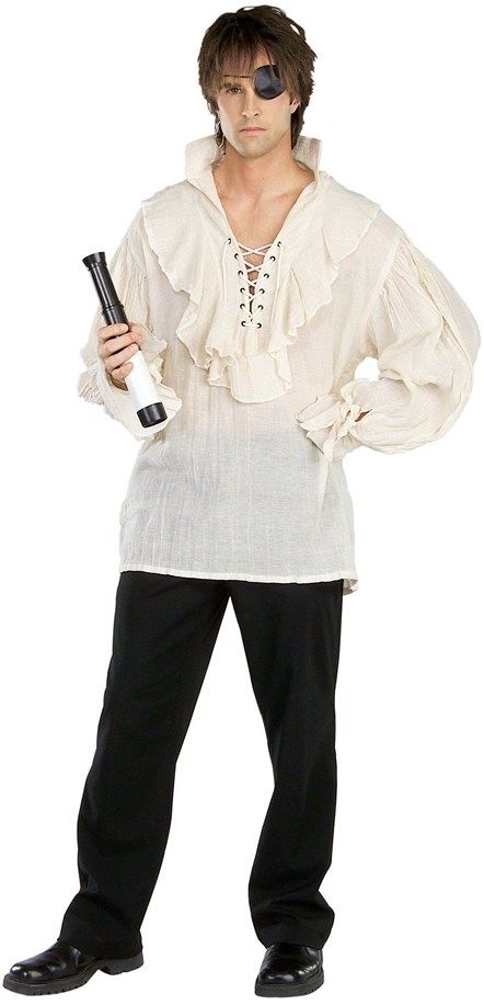 Рубаха пирата хлопковая, дополните образ пиратской повязкой на глаз, шляпой пирата и мечом.