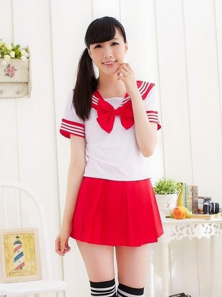 Красный костюм Сейлор Мун - классическая японская школьная форма. Костюм состоит из белого топа с красным моряцким воротничком и красной юбочки со сборками. Топ украшен объемным красным бантом. Костюм станет отличным подарком для любительниц аниме и японской тематики.
