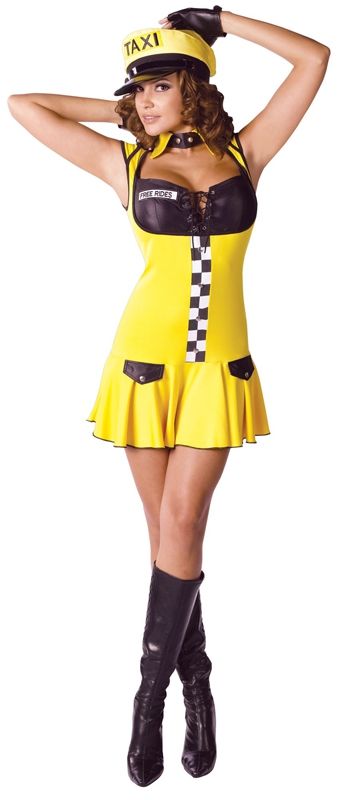 Костюм обворожительной таксистки. Такому водителю не жалко отдать тройную плату за проезд. В состав костюма входят: платье, кепка таксистки, воротник, перчатки без пальцев.