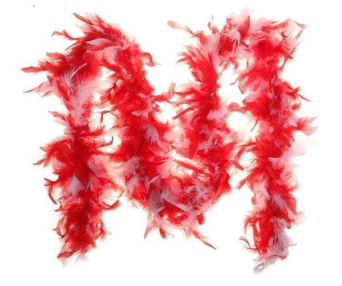Карнавальное боа красно-белого цвета послужит отличным аксессуаром для маскарадных костюмов и вечерних платьев. Шарф сделан из перьев. Длина боа 2 метра.