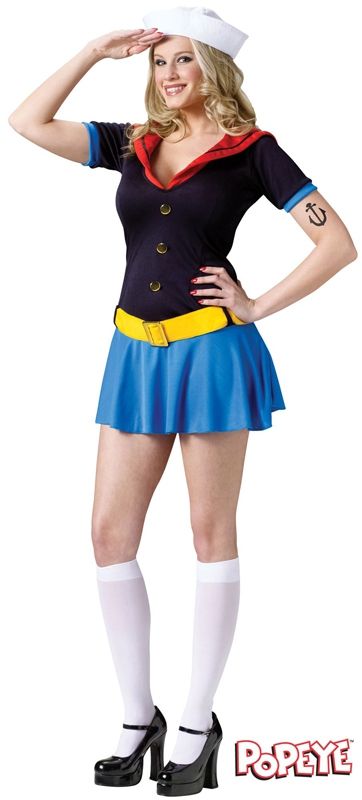Костюм миссис Попай включает в себя платье, ремень и белую шапочку. В этом костюме вы можете стать прекрасной спутницей моряка Попайя. Костюм моряка Попайя вы также можете найти на нашем сайте.