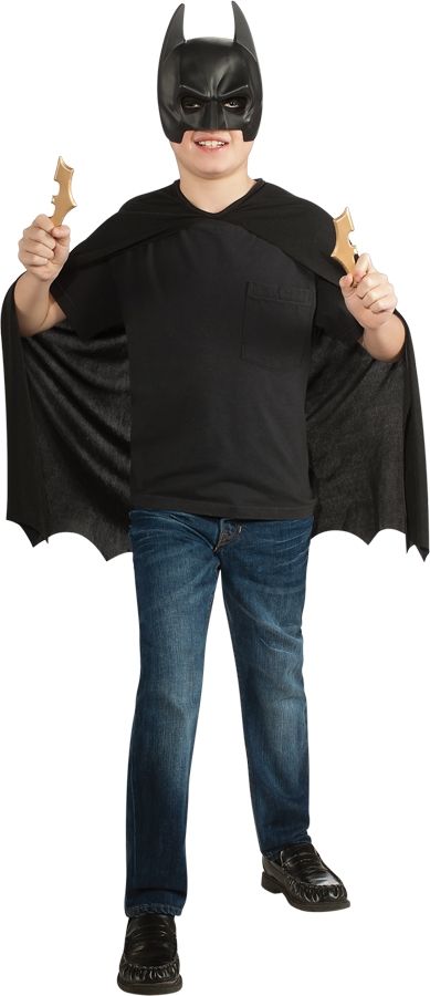 Удобный и легкий костюм бетмана. Включает в себя черную маску бэтмана, черный плащ и два бэт-сюрекэна.