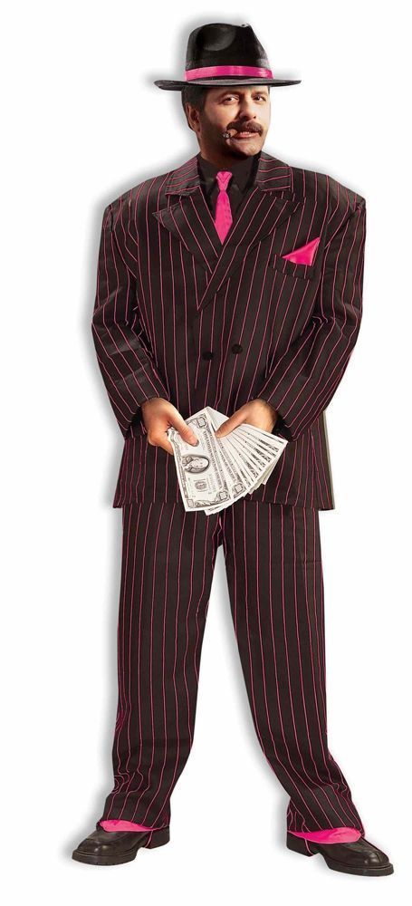 Мужской розовый костюм гангстера включает в себя брюки и пиджак с розовыми полосками. Такой костюм непременно понравится мужчинам, которые любят смотреть фильмы про гангстеров. Надев такой костюм на вечеринку, вы станете плохим неумолимым гангстером, которого уважают.