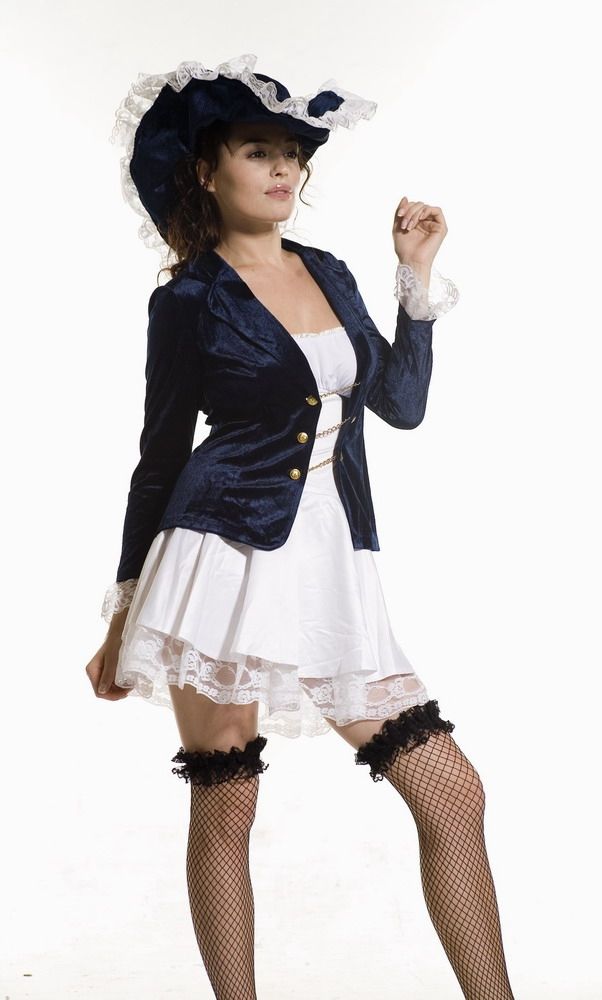 Костюм сексуальной пиратки 18 века.Костюм включает в себя: пиджак на цепочке, мини-платье и настоящую пиратскую треуголку.В паре с белыми чулками сделает вас просто неотразимой.