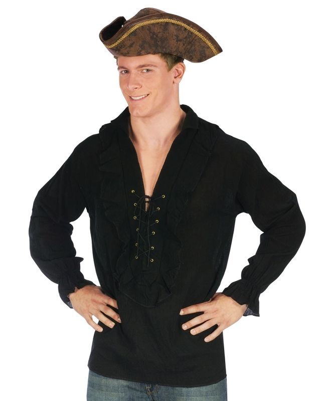 Черная рубашка ассоциирующаяся с пиратами по многим телефильмам. В этой рубашке по вам будет понятно что вы и есть самый настоящий пират.(Оружие, обувь и прочие аксессуары для дополнения образа вы также найдете в нашем каталоге).Рекомендации по уходу: Только чистка по месту загрязнения.