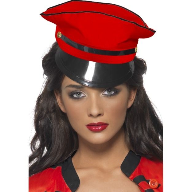 Милитари фуражка поп-звезды лучший аксессуар для костюма на костюмированной вечеринке. Красного цвета с черным козырьком.