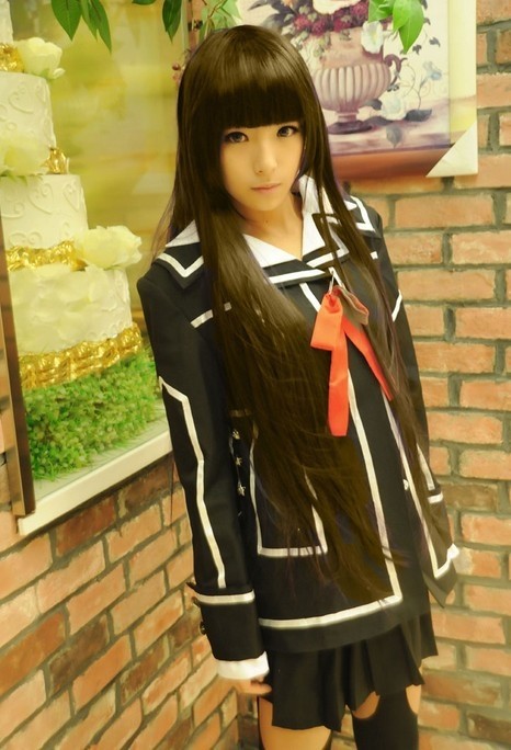 Школьная форма Юки Куран из аниме Рыцарь-Вампир выполнена в черном цвете с белой отделкой. В комплект входит короткая плиссированная юбочка, белая рубаха, а также удлиненный пиджак с белым воротником и отделкой. К пиджаку прилагается красный атласный бантик, нарукавная белая повязка.