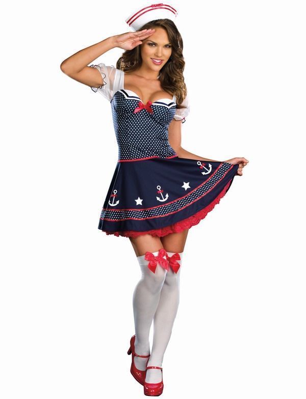 Надев этот костюм в день моряка, вы сделаете правильный выбор. Подобрав к наряду красивые чулочки и обувь, вы завершите свой образ милой морячки.