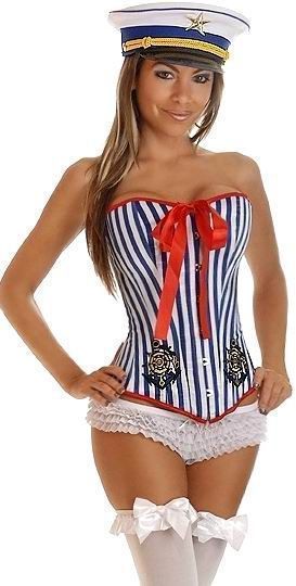 Незаменимый по своим особенностям костюм для увлекательных путешествий, в том числе и морских. В комплекте: корсет с застежками спереди и фуражка.