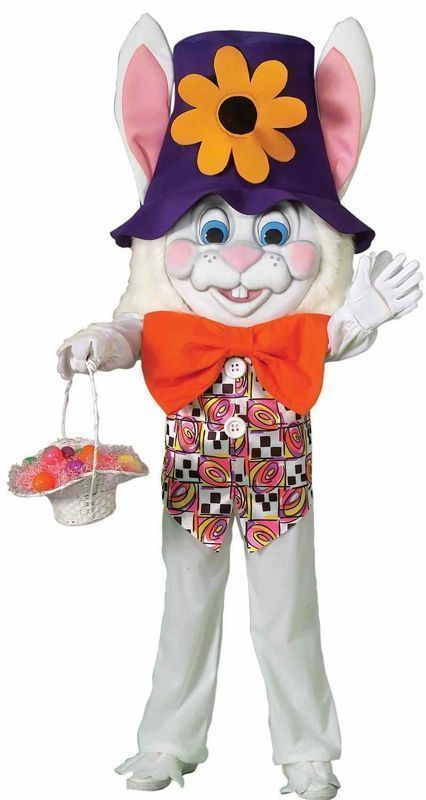 В костюме огромного кролика имеется большая голова с огромной шляпой и ушами, разноцветная жилетка с бабочкой , кофта с длинными рукавами и штаны. Этот забавный костюм вы сможете надеть на маскарад, карнавал и другие торжества.