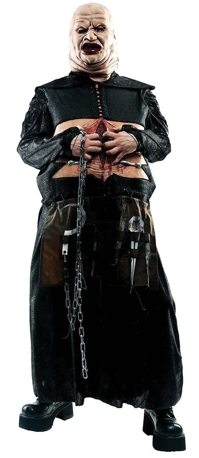 Костюм Восставшего Толстяка сделан по подобию костюма одного из героев фильма "Восставший из ада". В комплекте имеется плащ с разрезом с имитацией разорванной кожи живота, фартук с инструментами для пыток, надувной живот, а также жуткая маска с зашитыми глазами. Можете быть уверены на Хэллоуине ваш костюм будет одним из самых лучших.