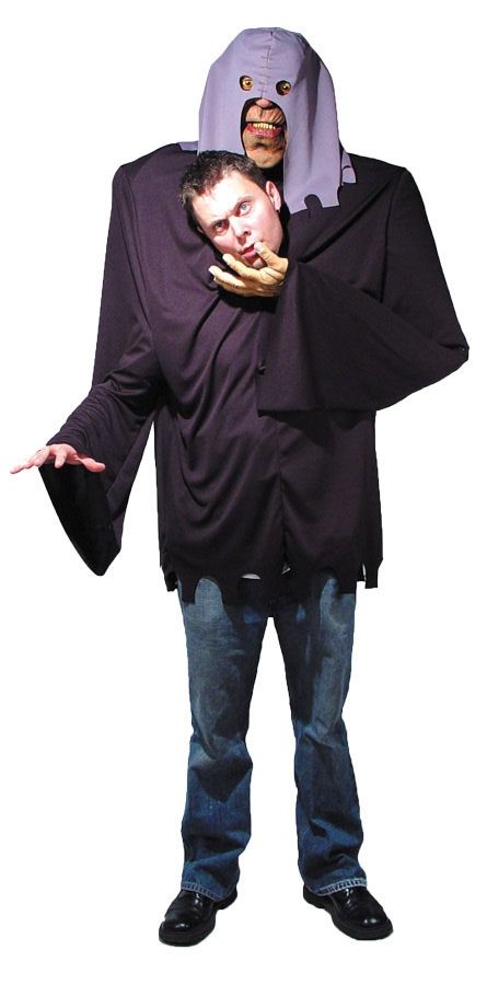 Костюм палача с головой представляет собой чёрную робу с прикрепляемой маской,пояса, накидки на маску и крепежа. В робе есть отверстие, куда вы можете просунуть свою голову и будет создаваться иллюзия того, что этот палач держит вашу голову.