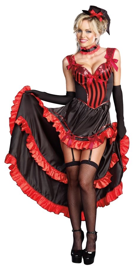 Шикарное черно-красное платье в стиле Канкан с многослойной юбкой. Верх платья имеет вид корсета на широких лямках, которые украшены пайетками. Грудь поддерживают удобные чашечки на поролоне и визуально увеличивают ее на размер. В комплекте к платью идут подвязки, миленькая шляпка и повязка на шею. Вы также можете подобрать у нас на сайте чулки по своему вкусу. Танцуйте ночи напролет, ведь это не только весело, но и полезно.