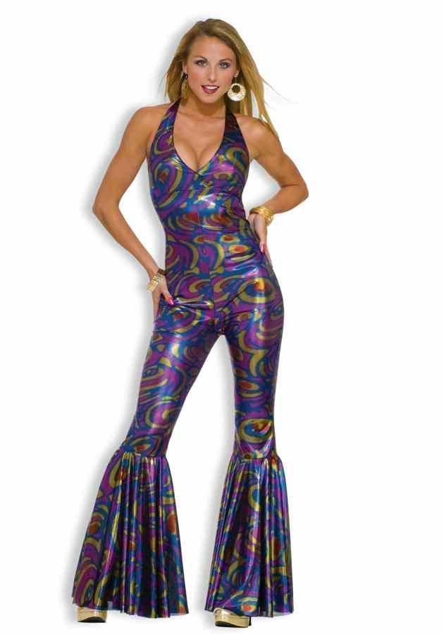 Взрослый карнавальный костюм яркой танцовщицы в стиле ABBA. В этом костюме вы обязательно покорите все танцполы на карнавальных или тематических вечеринках. Благодаря особому материалу костюм выглядит просто прекрасно. В комплект карнавального костюма яркой танцовщицы входит диско-комбинезон. Имитация винила.