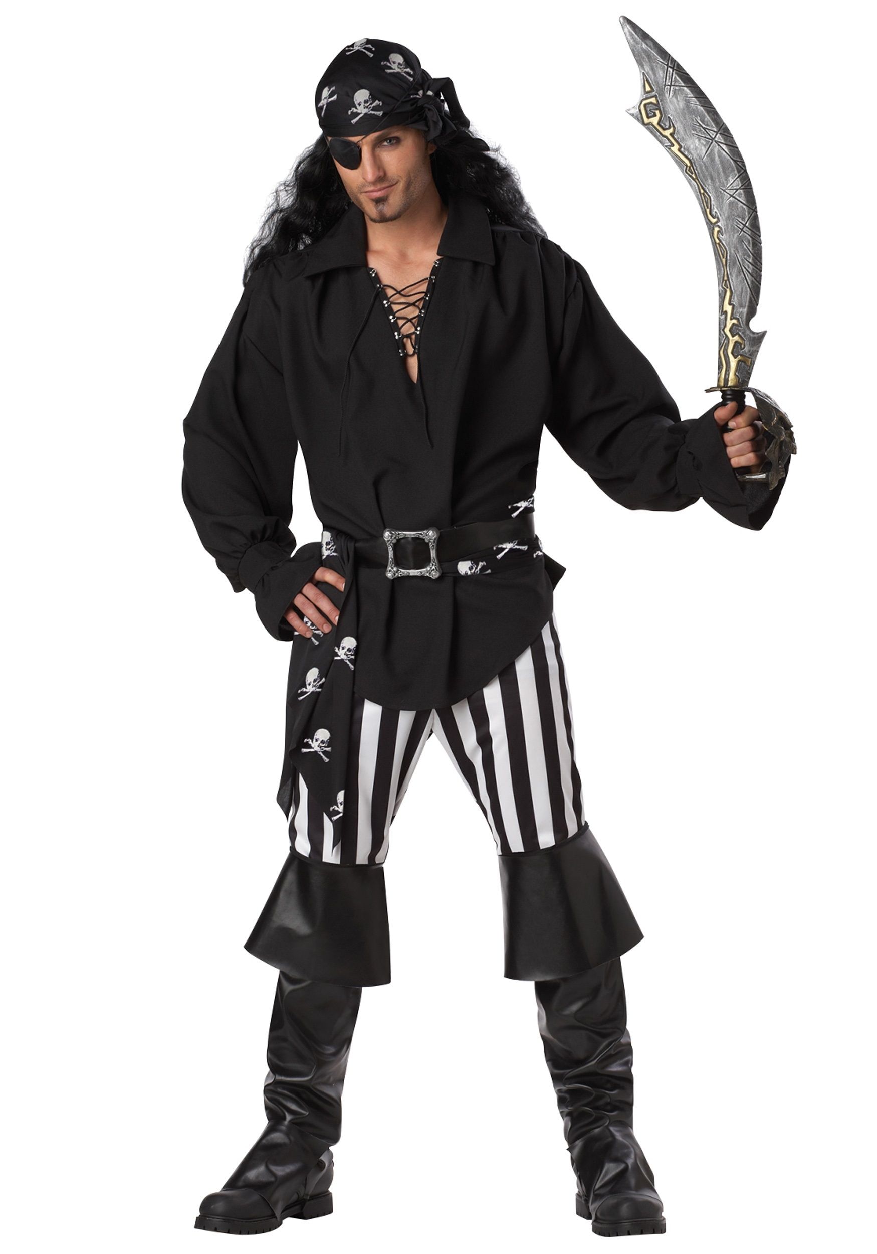 Всякий пират должен быть суровым и не иметь чувства жалости. В костюм беспощадного пирата входят: рубаха, штаны, ремень, платок на пояс, бандана, накладки на обувь, повязка на глаз.