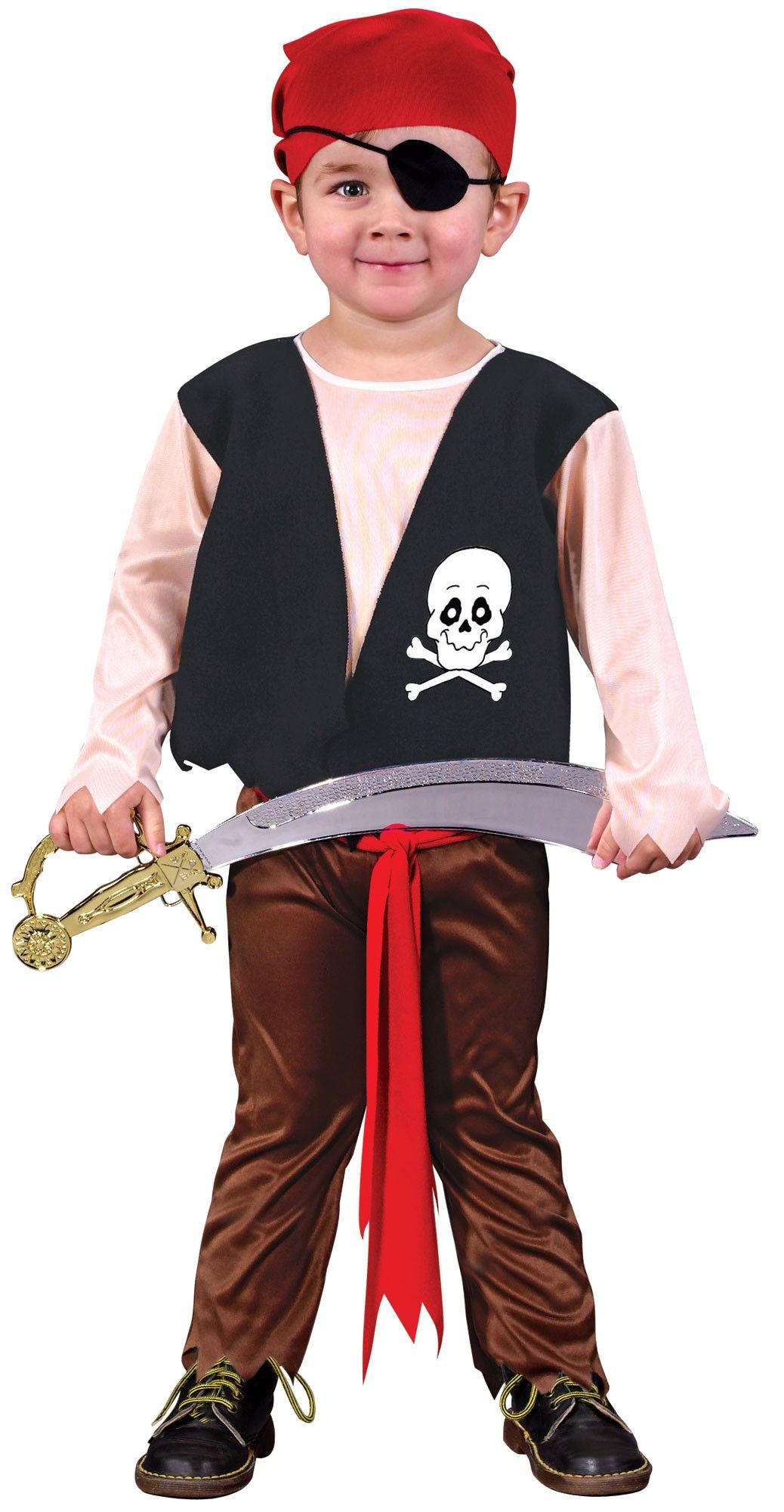 Этот славный костюм отлично подойдет непоседливым мальчишкам, направив их игровой пыл в нужное русло. В комплекте: комбинезон, бандана, повязка на глаза и пояс.
