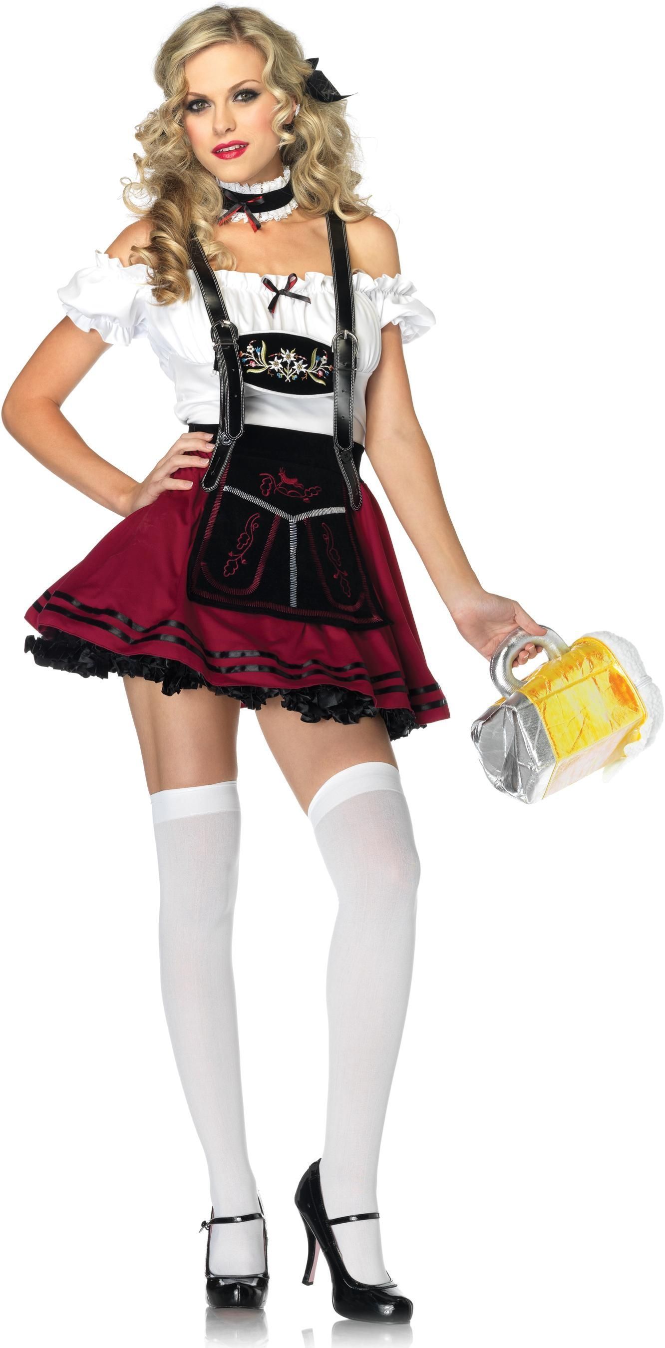 Костюм баварочки включает в себя платье с пришитым фартуком, подтяжки